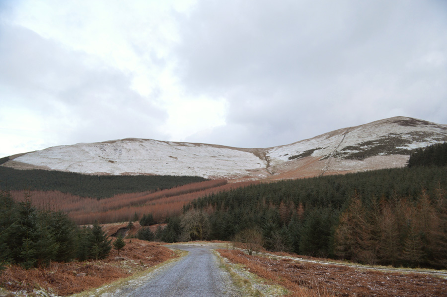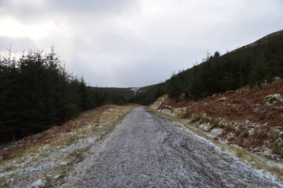 Pausing to look back along the forestry track towards Broom Fell. |