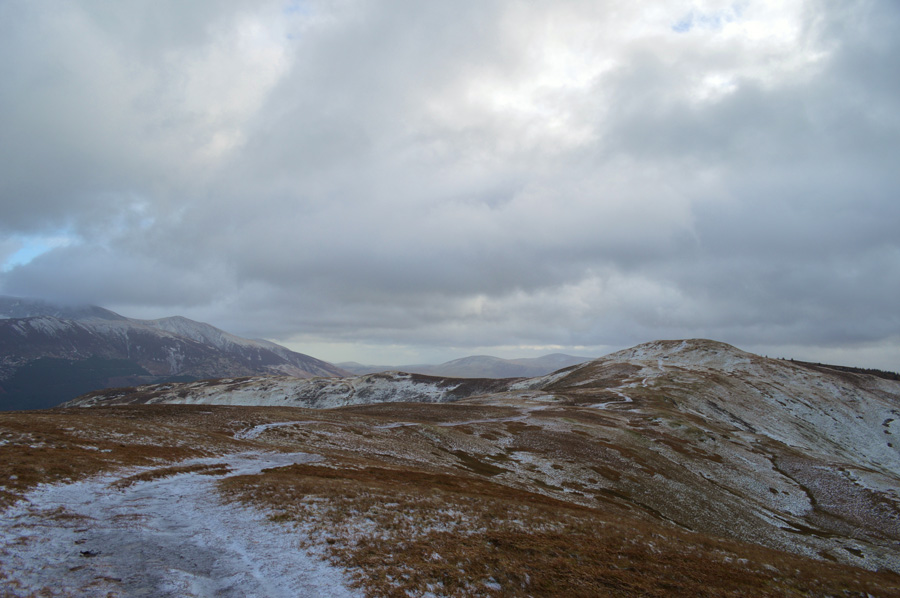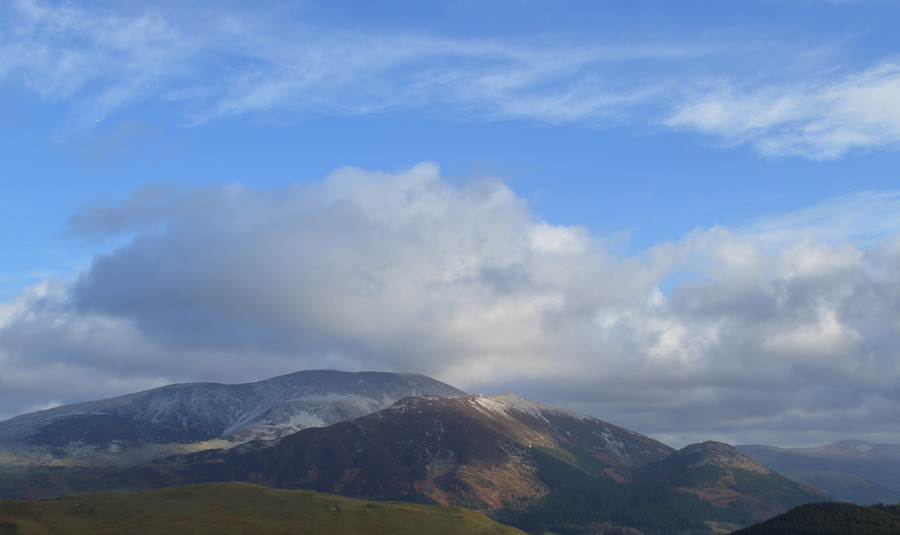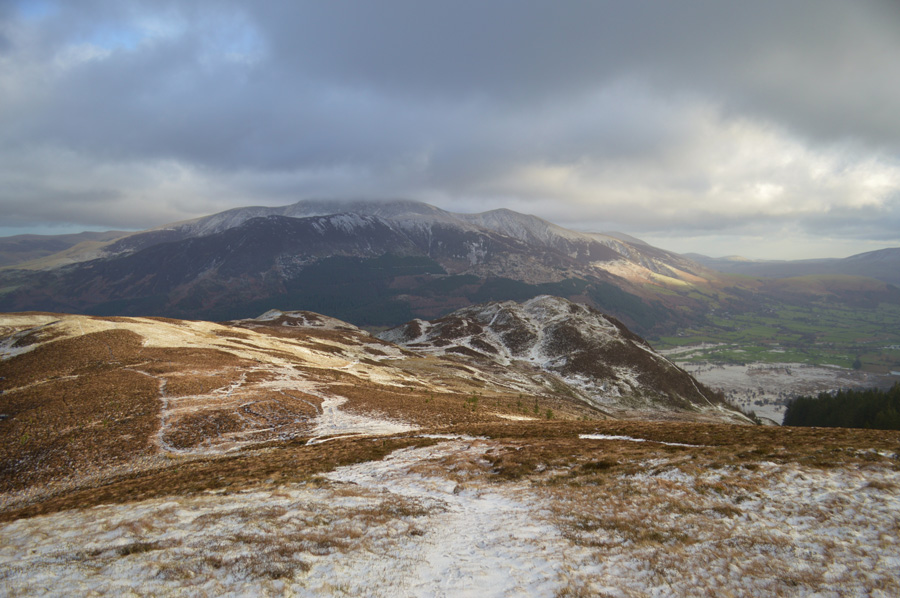 Looking back on Barf and a cloud topped Skiddaw during a sunny spell |