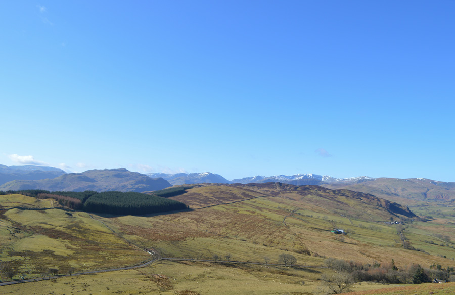 Extended views over Great Meldrum and Gowbarrow Fell. |