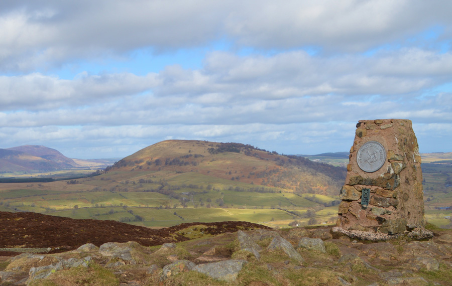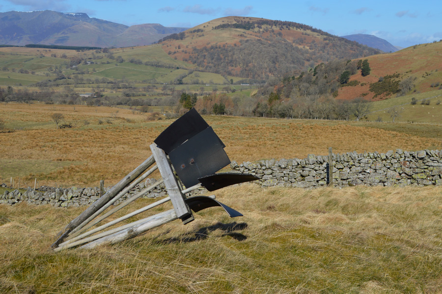 Great Mell Fell seen as we pass by the Fire Beaters whose stand had been blown sideways over time. |