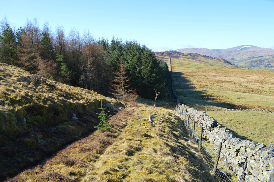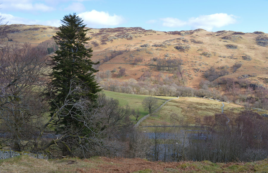 Looking back on Gowbarrow Fell from above the newly named Aira Force Cascades Car Park. |