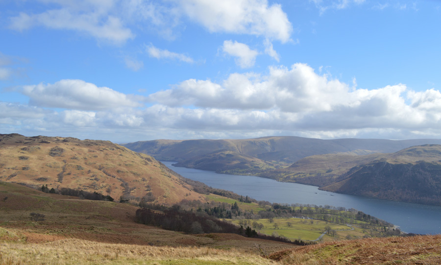 The surprise view of Ullswater during our Gowbarrow Fell descent. |