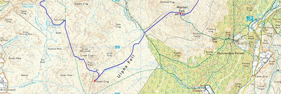 Green Crag and Crook Crag from our Harter Fell ascent. |
