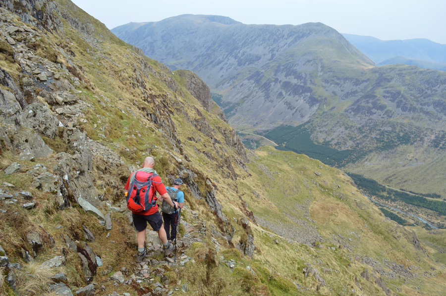 Looking back along the High Level Route with Looking Stead, Kirk Fell and Great Gable in the distance. |