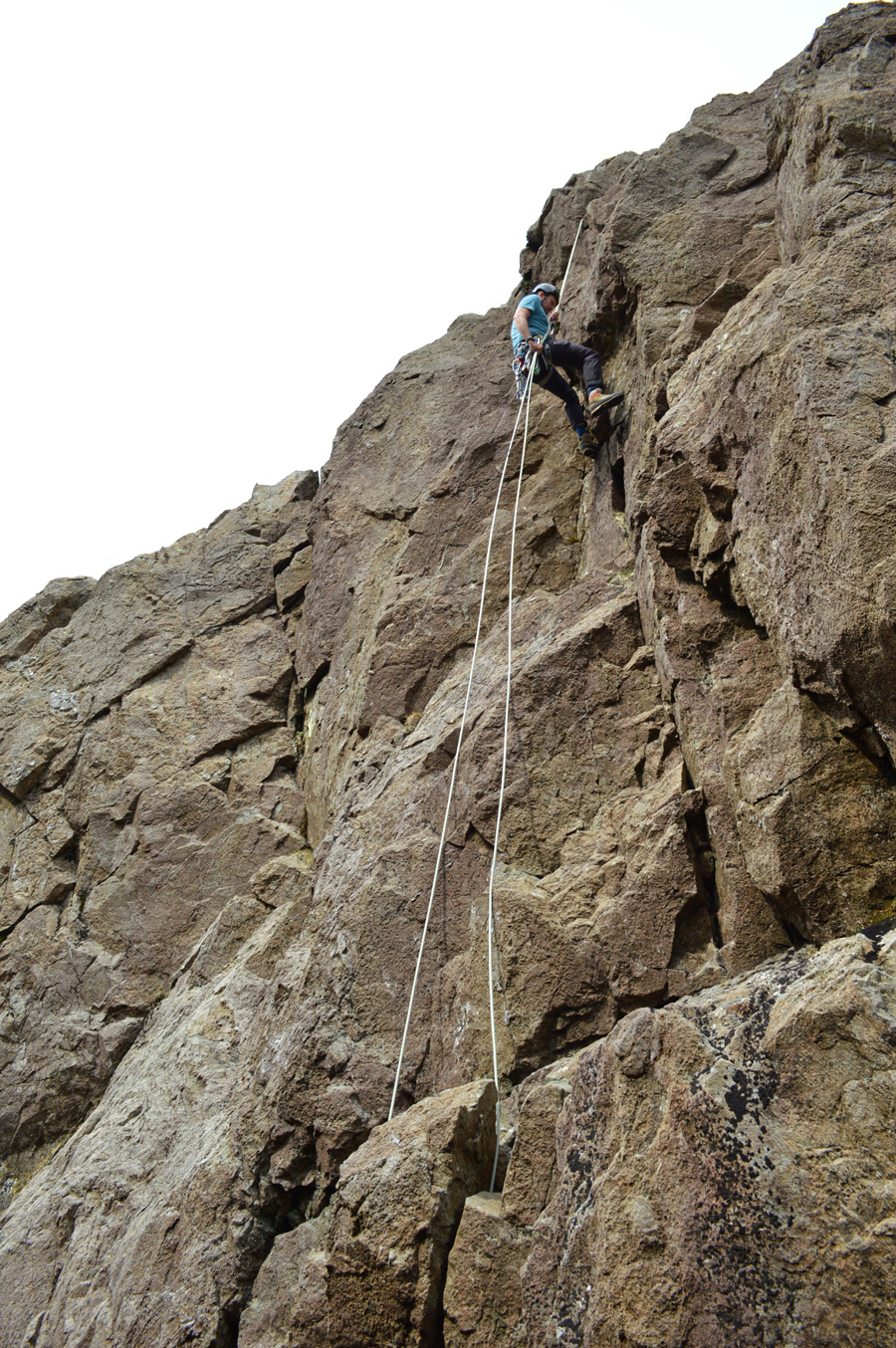 Aled re-appears a few moments later over our heads and after securing the Cams and Slings he then instructs Rod to start climbing while he belays. |