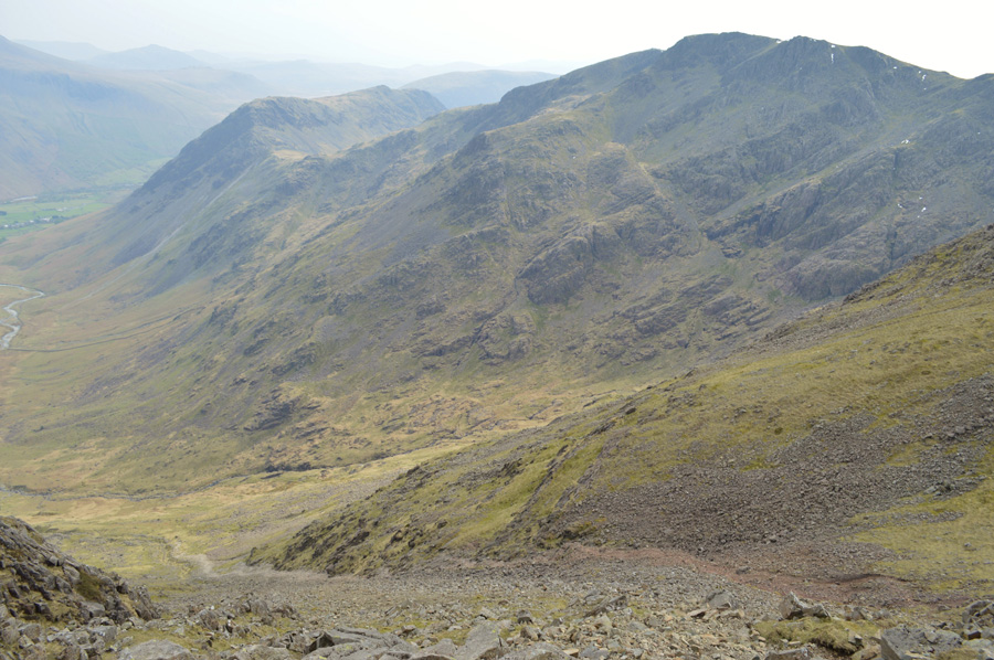 Views back into Mosedale with Dore Head and Stirrup Crag dominating the skyline. |