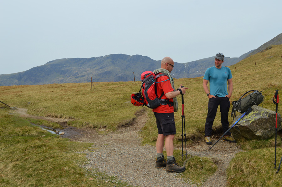 Up ahead is the top of the Black Sail Pass but first we've got to ascend steadily as Gatherstone Beck falls away to our right as we get deep into conversation about Aled's job as a Mountaineering guide among many other titles. |