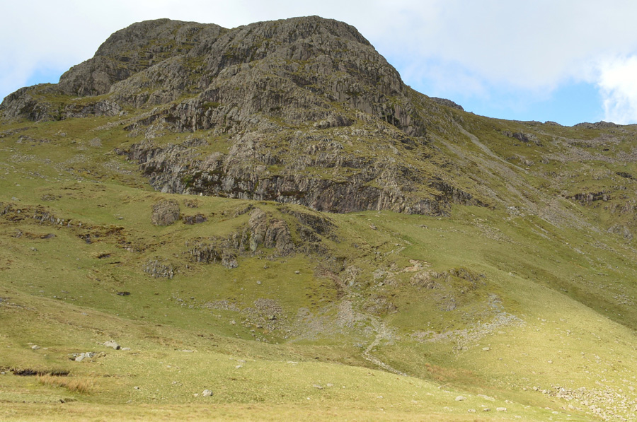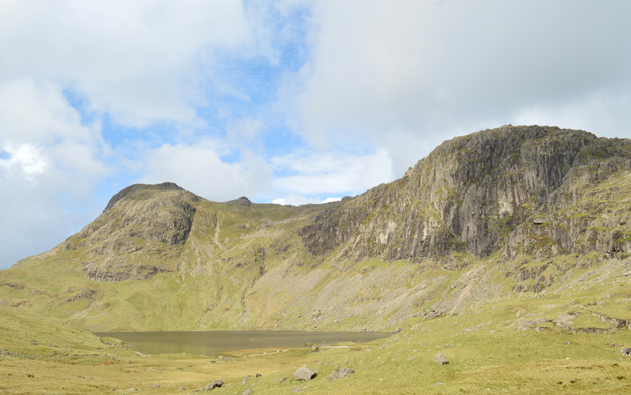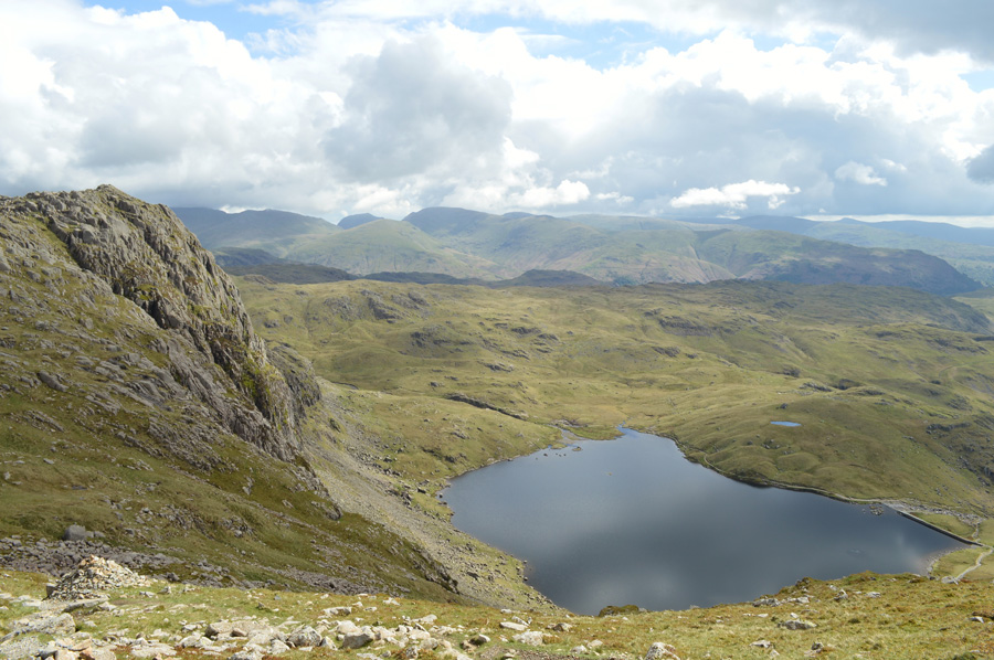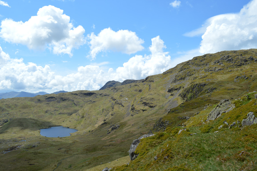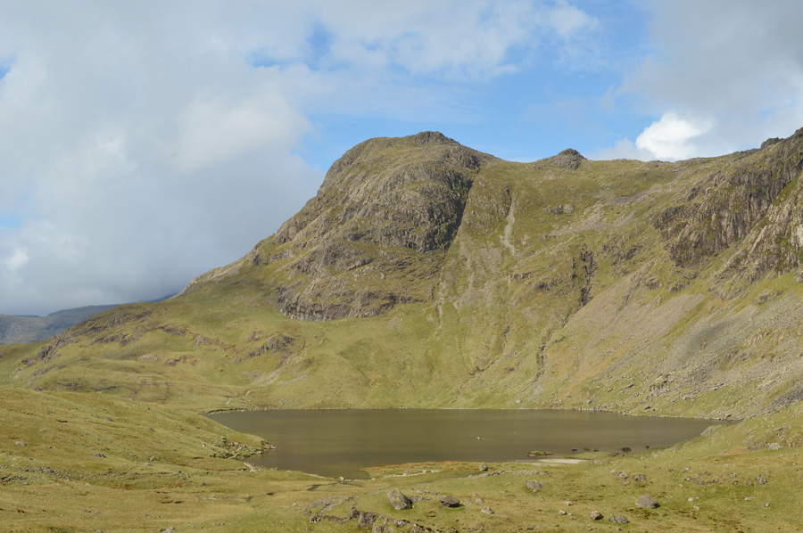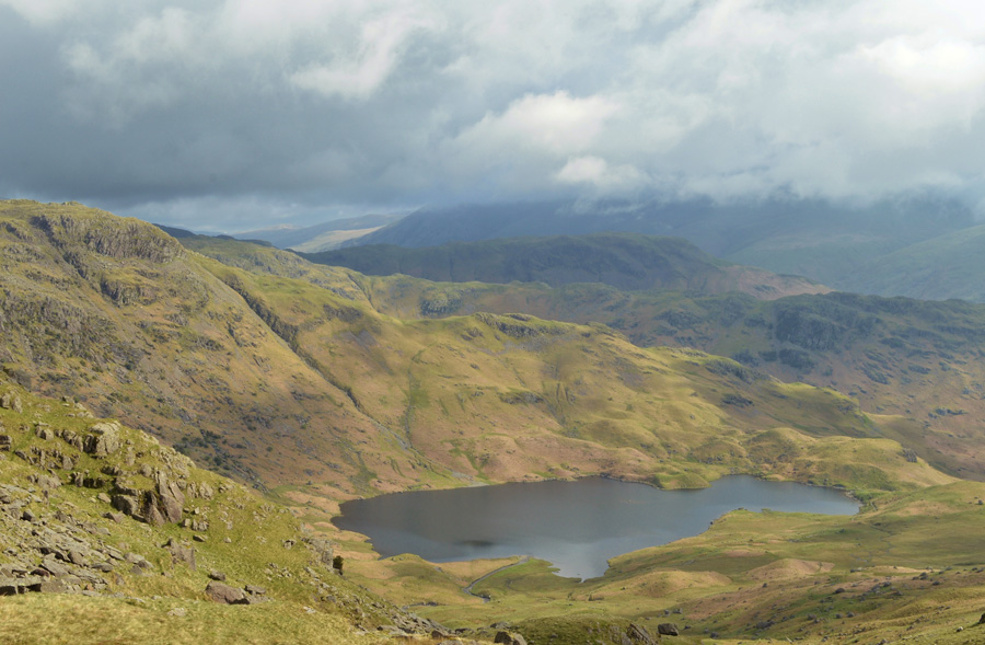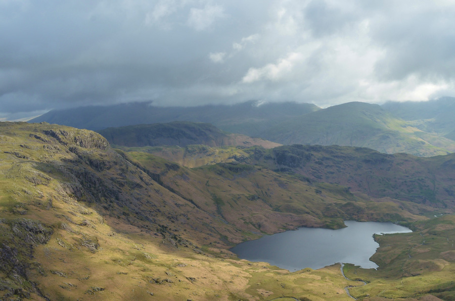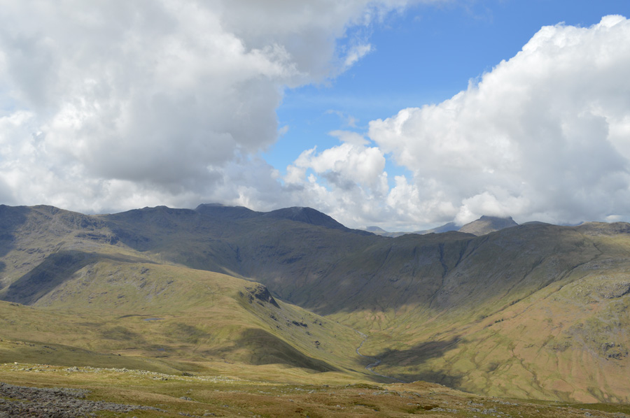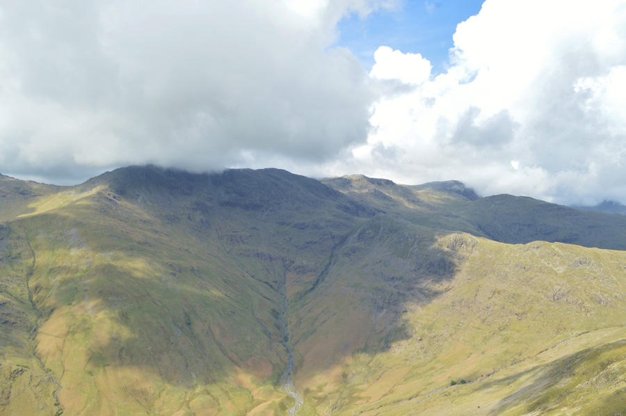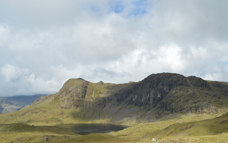 You may just be able to make out Stake Pass Tarn marking the top of Stake Pass in the centre left of the photo. |