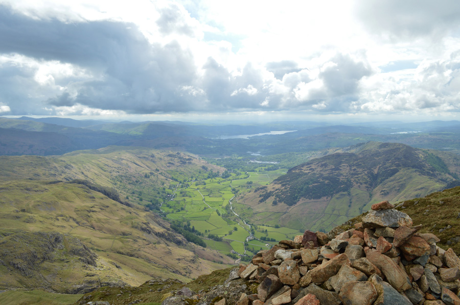 Great Langdale from Harrison Stickle summit cairn. |