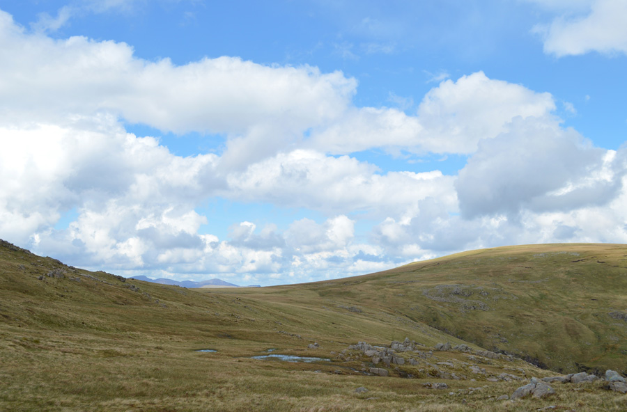 It's time to pack up lunch now but not before one last photo looking towards Ullscarth, Skiddaw and Blencathra. |