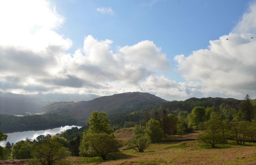 Views over the Wyke Plantation towards Grasmere Lake and Loughrigg Fell. |