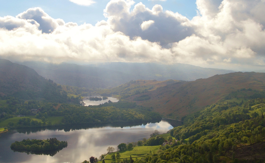 Grasmere Lake, Rydal Water and Loughrigg Fell. |