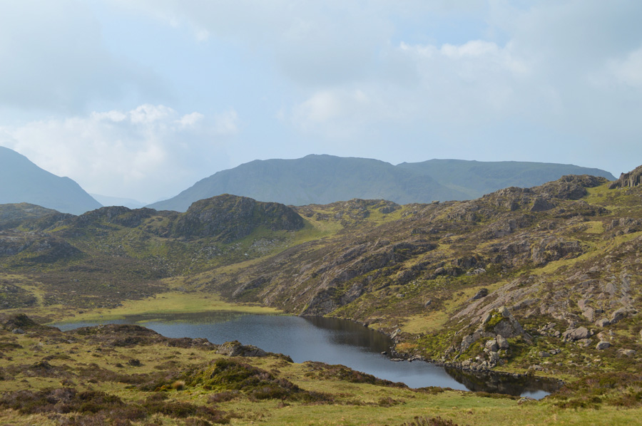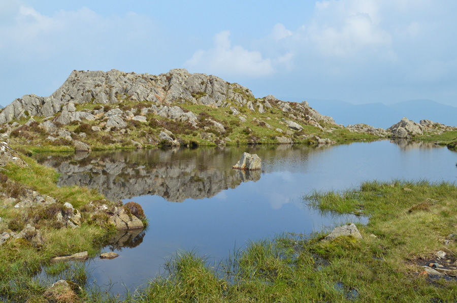 With our second summit reached and tapped by my walking pole we descend from the rocky ledge towards this small pool which I have always held a fondness for since my first visits here some years ago, after a quick photo we head around the waters edge where we pick up our descent path, it's a bit craggy with some scrambly bits thrown in, it should be good fun. |