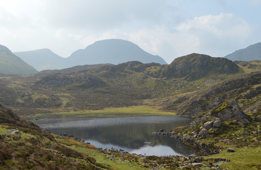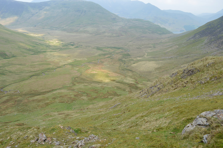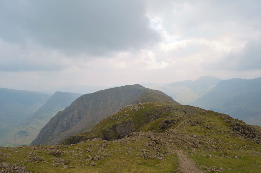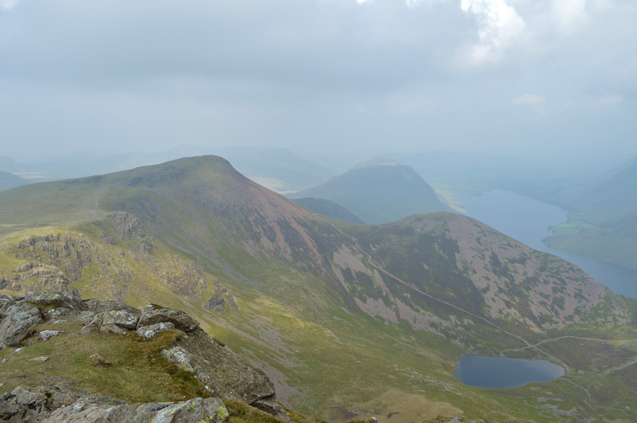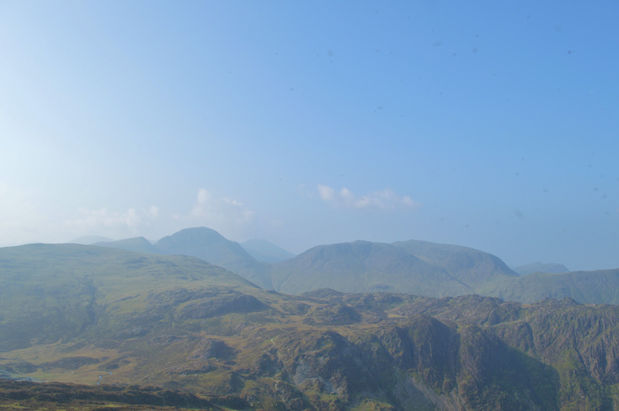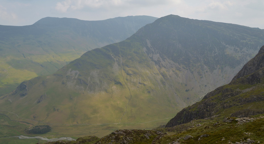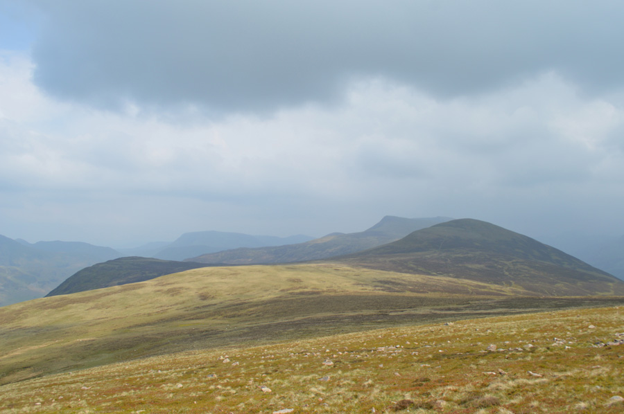 Hazy views towards Brandreth, Green Gable, Great Gable and Kirk Fell |