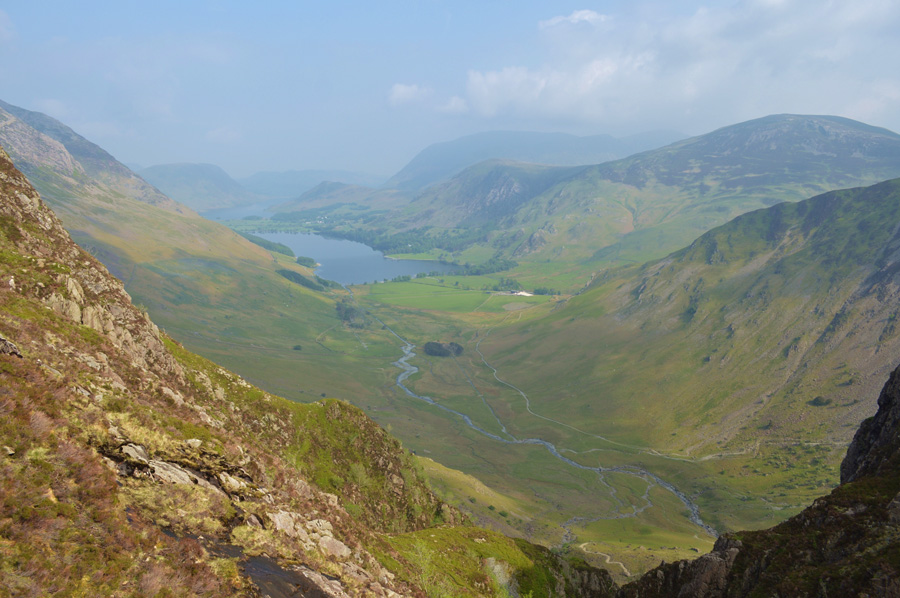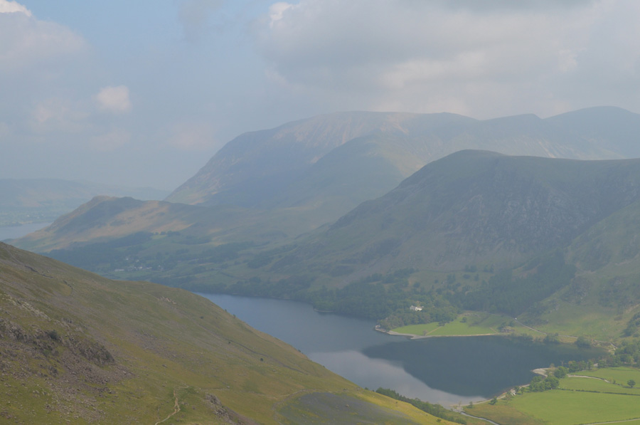 Little Dodd, Starling Dodd and Great Borne, all the while the haze is leaving its mark over the Ennerdale Valley. |