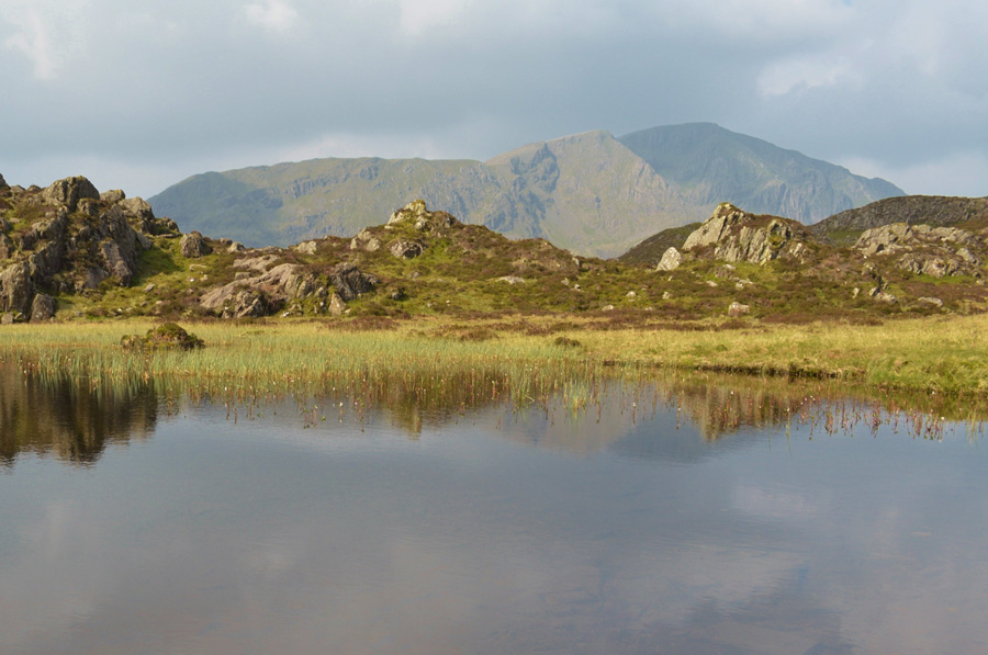 Blackbeck Tarn with Green Gable and Great Gable in the distance. |