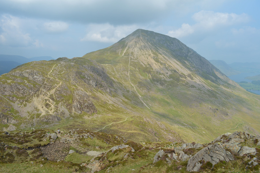 Great Gable and Kirk Fell seen as we approach Blackbeck Tarn. |