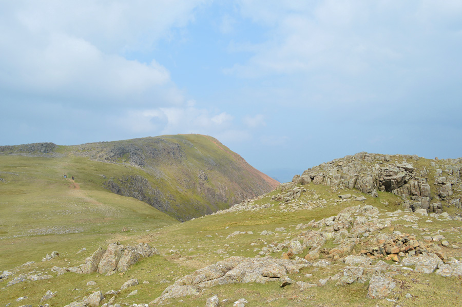 After leaving Innominate Tarn we ascended towards the summit taking in the rocky outcrops on route, from a distance a walker is sighted standing at the summit who we would soon pass as he heads towards Innominate Tarn, he keeps his head down as we pass.