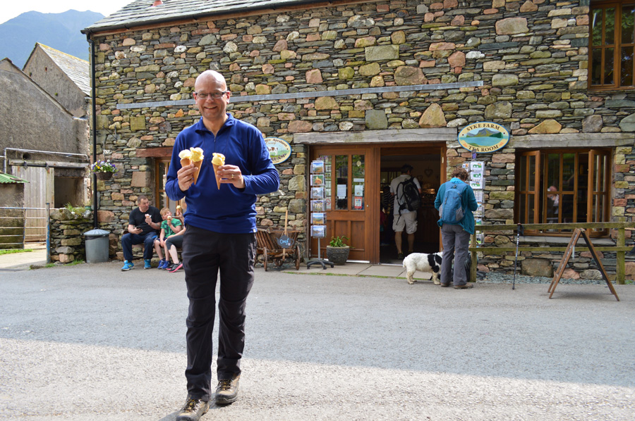 Rod emerged from the Tea Room holding three Ice Creams and a big grin across his face, all that was left was to eat our ice creams and watch the world go by, a superb way to end a long day on the fells. |