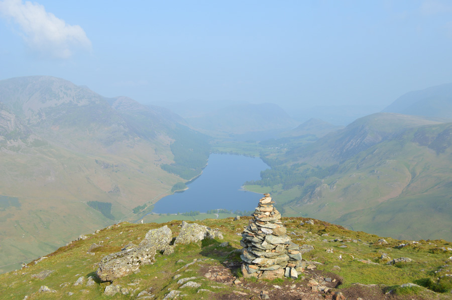 We soon reached Fleetwith Pike summit not before passing to young lads who it looked like they had rough camped the previous night judging by their laiden packs. We didn't need to reach the summit to see how thick the haze was as it was affecting our view even as close as half a mile away, despite our views being limited we were still thankful that it was warm, a bit too muggy though but we're not complaining, well not yet anyway. |