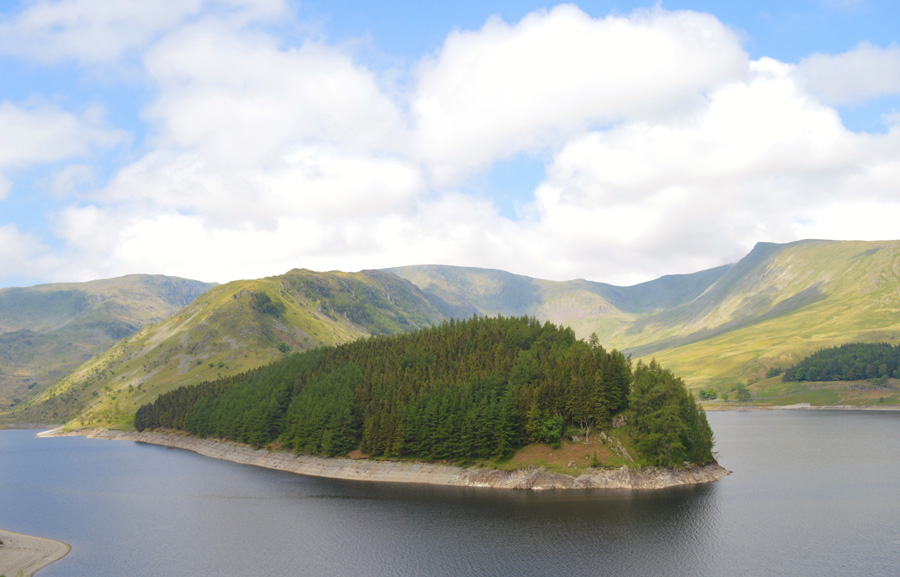 Haweswater with Gate Crag, Speaking Crag and Wood Howe Island. |