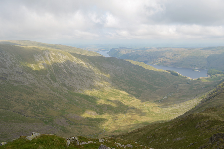 Blea Water Beck with Haweswater now in view from Mardale III Bell North Ridge. |
