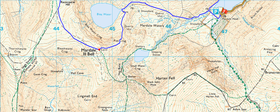 Mardale Head - Rough Crag - High Street - Mardale III Bell - Mardale Ill Bell North Ridge - Blea Water - Dudderwick - Mardale Head |