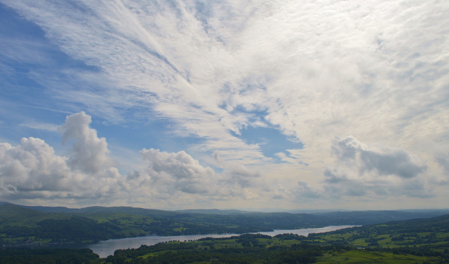 Thankfully it would seem that the low cloud, and indeed the haze is lifting revealing a long distance view over Windermere. |