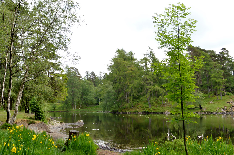 We soon caught site of Tarn Hows and followed a narrow path towards the northern end of the Tarn where a family looked to be enjoying a picnic whilst sat on a number of wooden benches. We followed the path around Tarn Hows as it passed through Tom Heights plantation, a path that I had never used which is flanked heavily by Scotts Pines all the while more and more day trippers were taking advantage of sunshine which made Tarn Hows a very busy place this morning. |