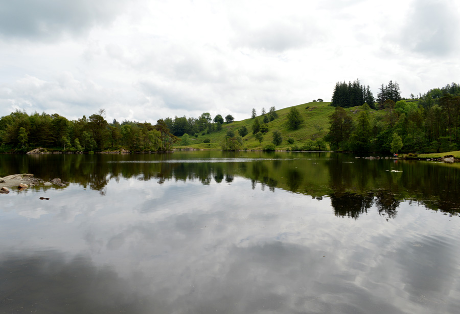 With the descent now behind us we joined the path which navigates around the northern edge of Loughrigg Tarn soon passing early morning walkers along the way. By now the cloud had once again lifted and the light had started to return slightly but not in the same way we had ascended Loughrigg Fell by, it was now quite overcast and as the waters surface suggest, very still. |