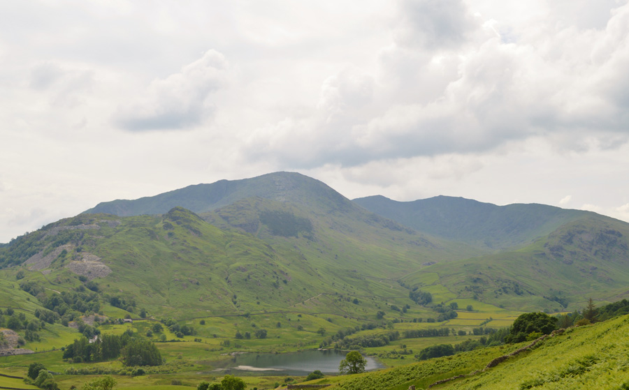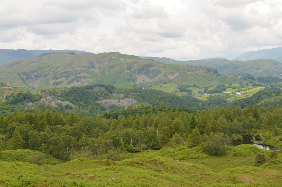Looking back on Loughrigg Fell from the path around Loughrigg Tarn. |
