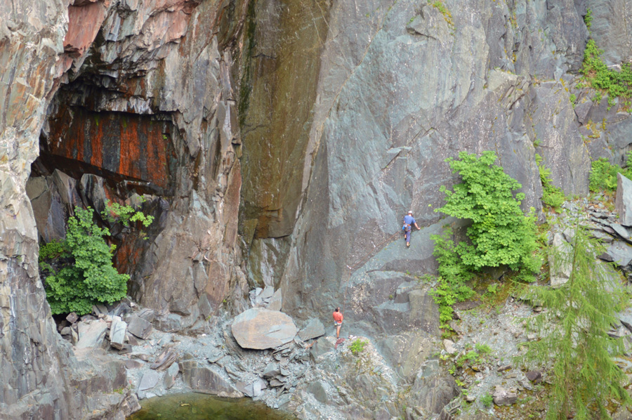 With Black Fell now behind us we steered towards Hodge Close quarry where we gazed down on two rock climbers who were scaling the vertical walls watched on by David and myself and a family who had joined us who earlier had asked us for directions towards the quarry. Feeling slightly guilty that I had asked David would he mind we take a peek due to what was still ahead of us we pressed on in the direction of Little Langdale. |