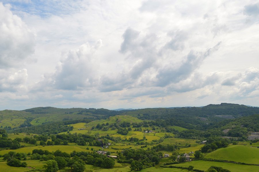 A broad view of Black Fell seen left, and Holme Fell over on the right. |