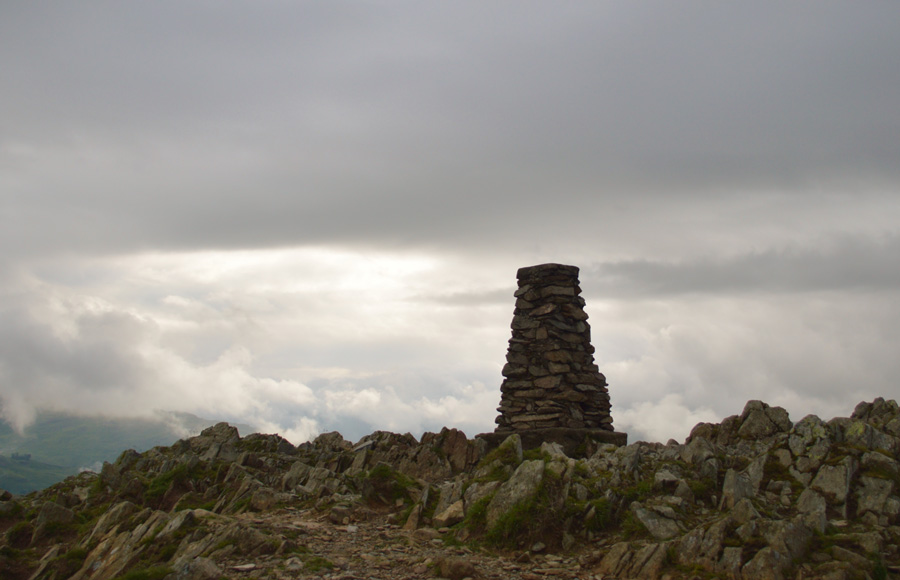 We crested the last few yards and I tapped my walking pole on the summit cairn, I didn't really take notice of the view as I guess I just wanted to take the weight off for just a while and maybe replenish some engery for the descent. With packs de-shouldered we sat on the dry grass and took in the views over Great Langdale which seemed to be the clearest we'd seen all day.