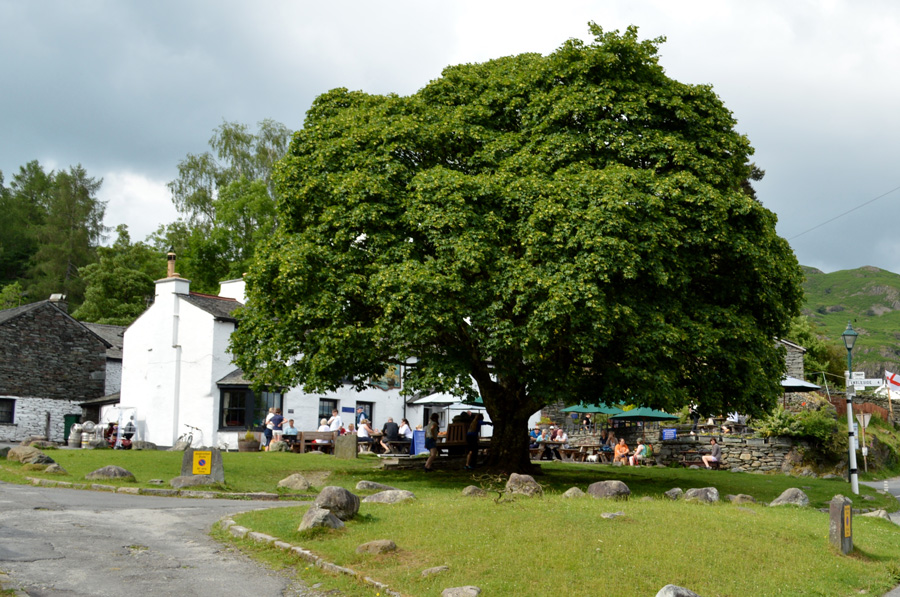 Under a blazing sun we flanked Great Langdale Beck as I sipped on the last of my hydration before arriving back at Elterwater, I knew the cars were close by, the thought of which meant the walk was coming to an end. Outside the Britannia Inn folk eat and drink while watching the world go by and I wondered what they thought about the two sunburnt blokes who looked like they'd just lead a party up Everest when in actual fact, they just walked four fells around Elterwater. |