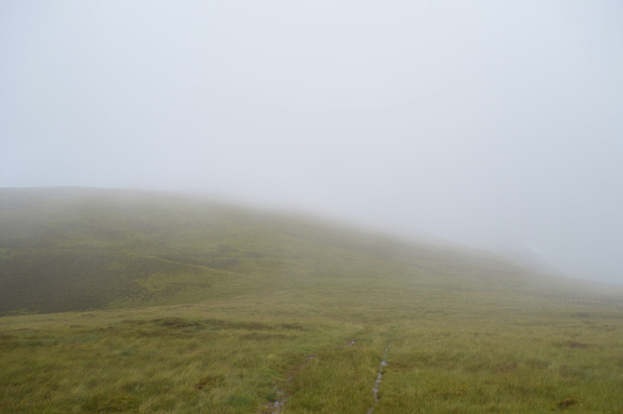 Slowly I could feel the water trickle into my boot and I guess that's where I said goodbye to anything that felt remotely dry from now on! We ascend steeply sometimes with walking poles at shoulder height keeping the fence post never far from view to our right, it's a tough ascent as David leads and I follow closely behind, this ascent had been on my mind all week and I guess I had built up a mental guard for me to follow although I wouldn't be telling the whole truth if I said that I had to dig incredibly deep, even missing a step wasn't an option I just kept going.