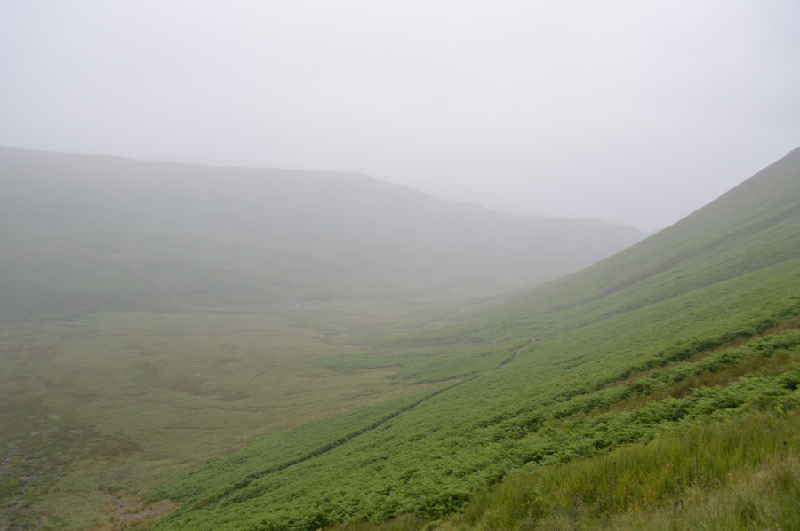 We left Gavel Fell behind and with it any hope of long distant views as the cloud once again rolled in and clung to the fell side revealing just a murky view of the route ahead at best, it had started to rain but not heavy and it was optional if hoods were lifted by which time we had decided we either got wet, or wetter.