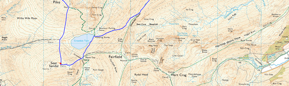 Fairfield, Great Rigg, Seat Sandal, Grisedale Hause and Grisedale Tarn. |