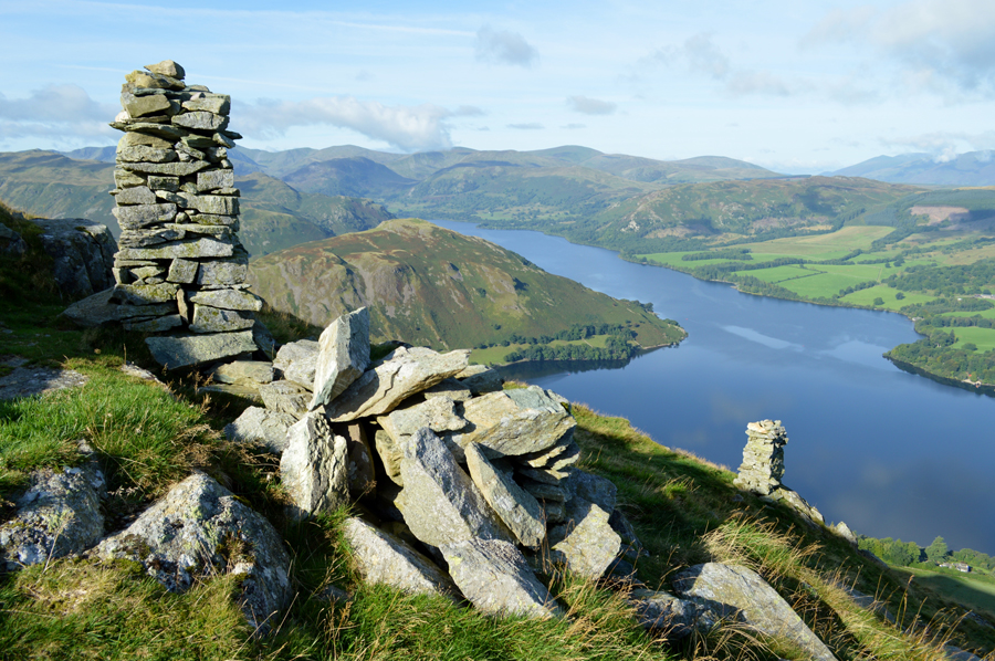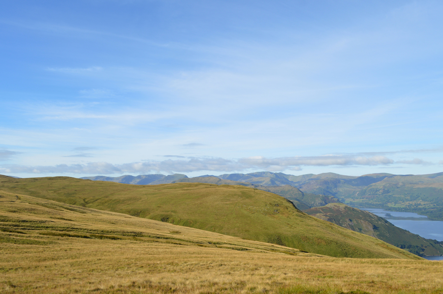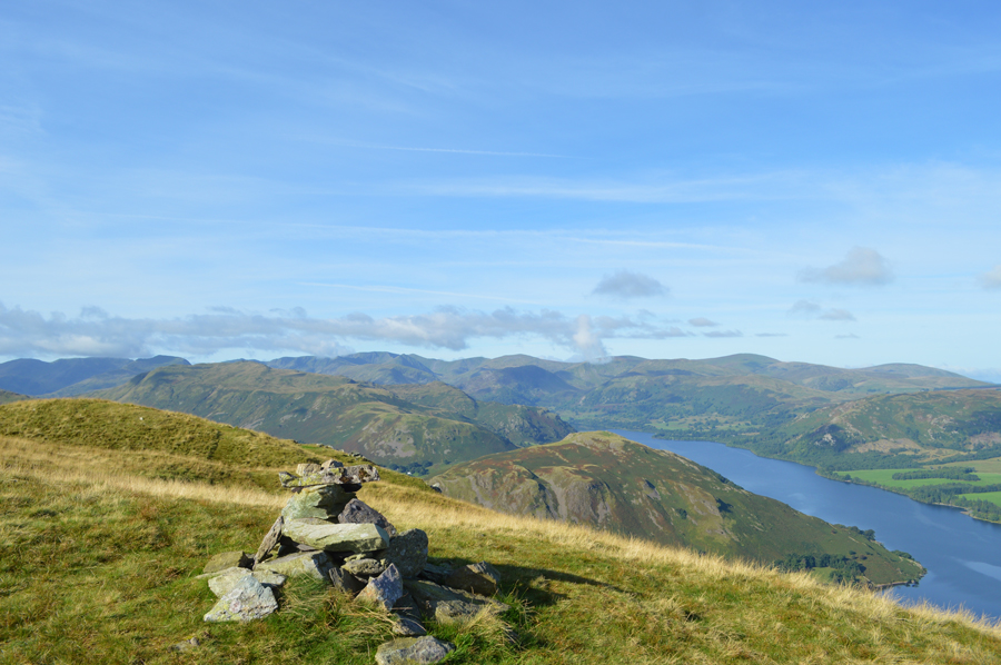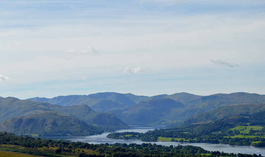 Distant views over Ullswater towards a host of Eastern Fells including Dove Crag and Hart Crag, St Sunday Crag and Helvellyn and the Dodds. |