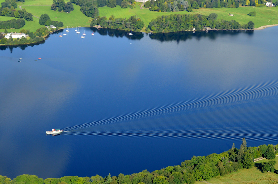 Here silently cutting through the surface of a polished Ullswater while on route to Howtown. |
