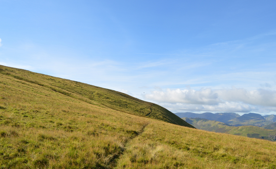 Maintaining our grassy trod as we follow the path on the Fusedale side of Loadpot Hill summit. |