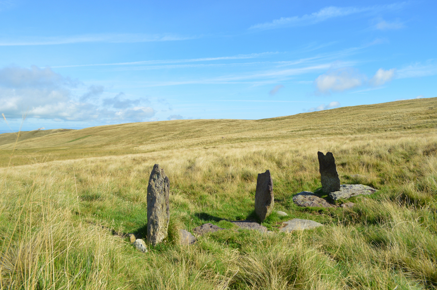 With time on our hands we leave the Roman Road and follow a faint path towards the Stone Circle which in past times, I had trouble locating. David however, has a fine eye for such objects and keeps his eye out first sighting the three Standing Stones. As always we are left guessing what life must have been like for the people who built these objects as I wondered what gives a place the right to have a Stone Circle built on it, and what makes this site so special. |
