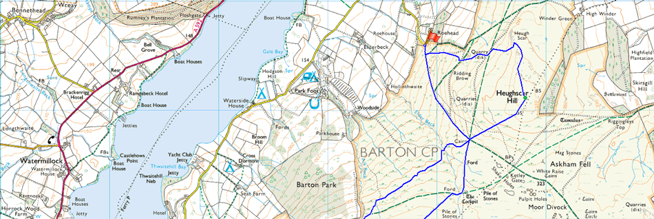 Roehead - Barton Fell - Arthur's Pike - Swarth Beck - Bonscale Pike - Lowther House Chimney - Loadpot Hill - High Street Roman Road - The Cockpit - Heughscar Hill - Heugh Scar - Roehead |