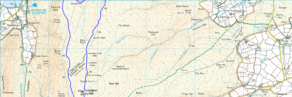 After descending Loadpot Hill summit we rejoin the High Street Roman Road now on route back towards Arthur's Pike. |