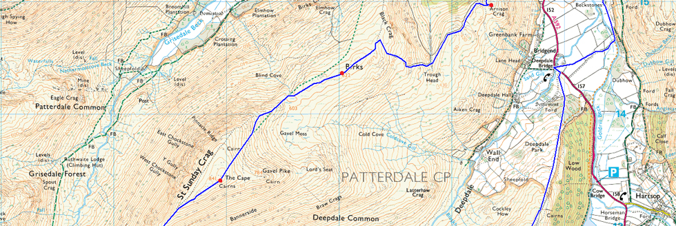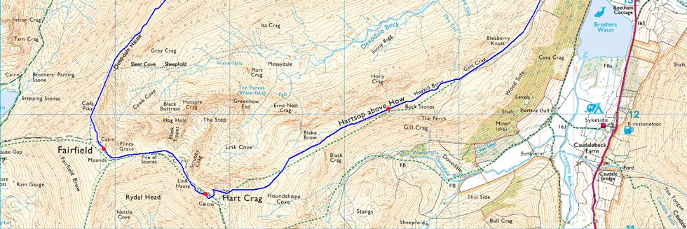 Patterdale - Arnison Crag - Trough Head - Birks - St Sunday Crag - Deepdale Hause - Cofa Pike - Fairfield - Hart Crag - Hartsop Above How - Deepdale Bridge - A592 – Patterdale |