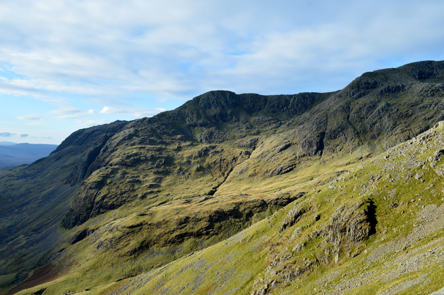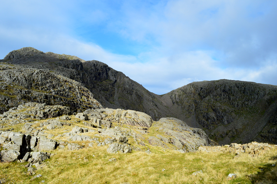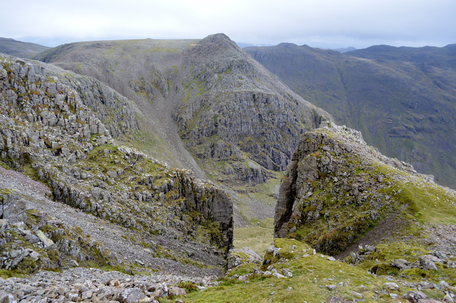 | Rough Crag, Scafell Pike, Broad Crag Col and Broad Crag seen over Little Narrowcove. |
