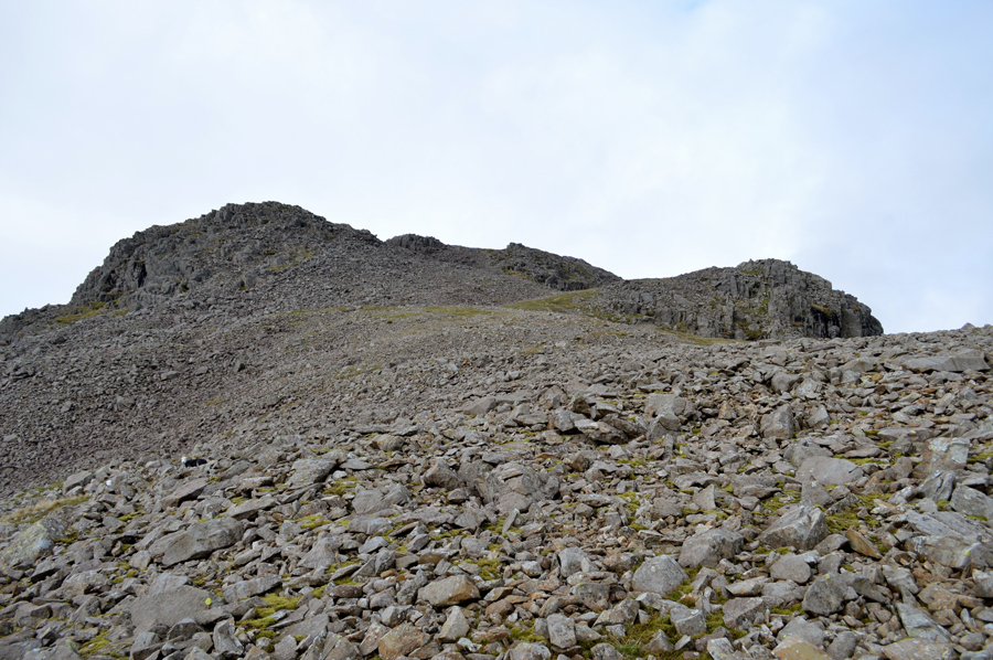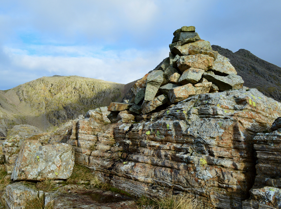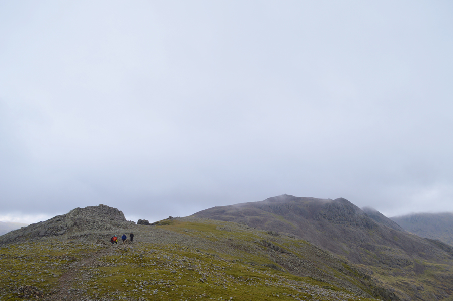 | Rough Crag is just ahead on the right with Scafell Pike summit just beyond. |