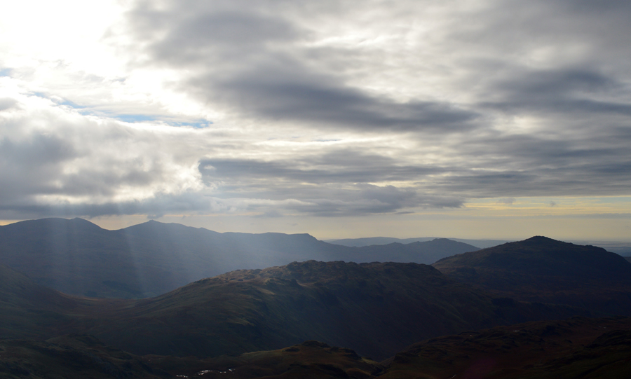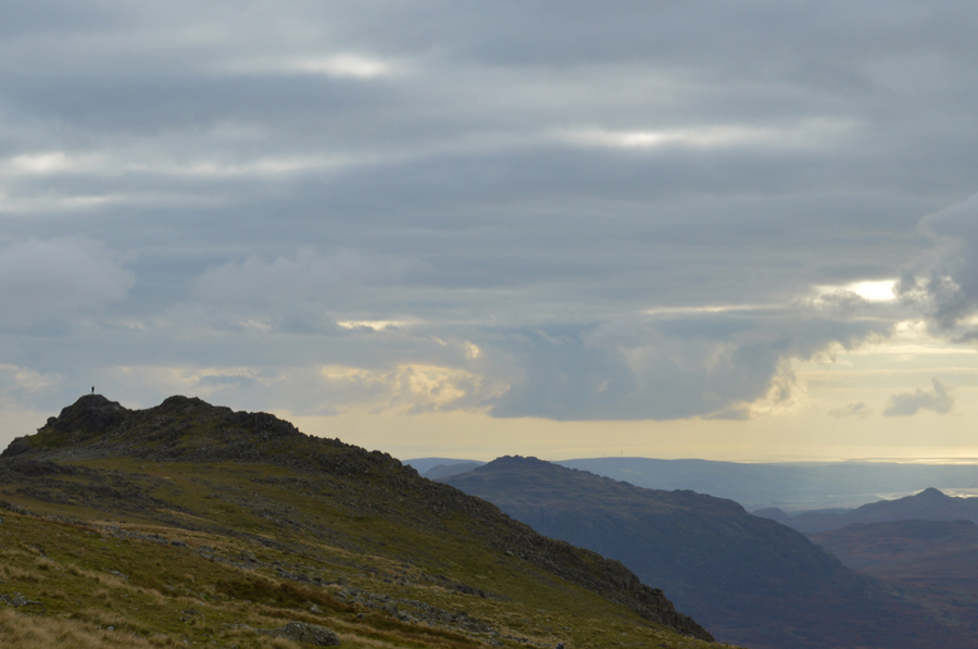 | Despite the fact that it had stopped raining the light was still incredibly low leaving silhouettes of distant summits, I guess this is how Autumn should look like on the fells. |