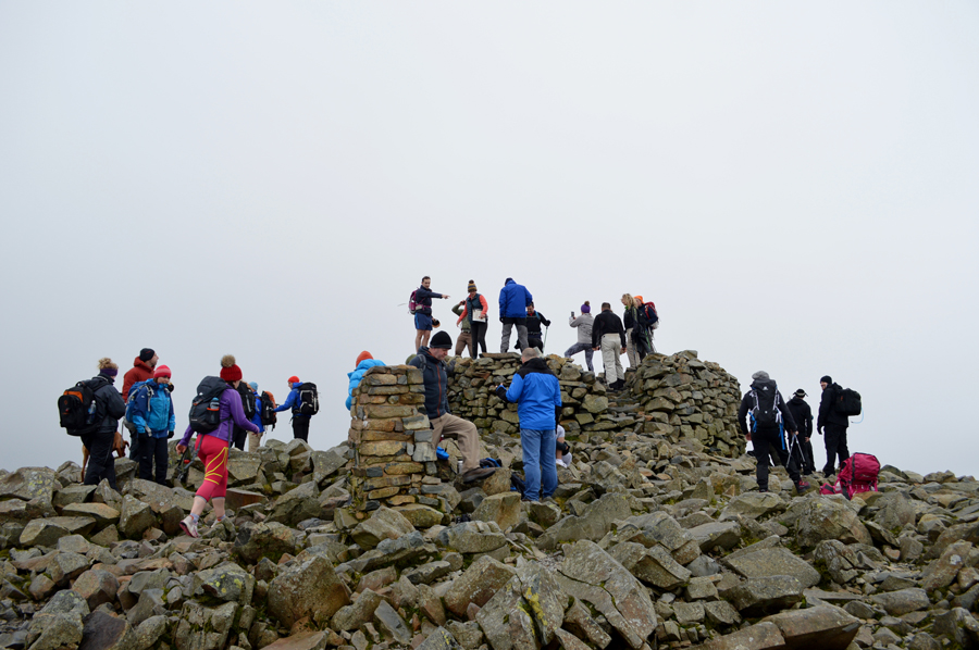Once at the summit I found a father and daughter just packing up after lunch, they spoke with a Welsh accent and we all commented on the un-forecasted rain before being joined by the group seen in this photo.