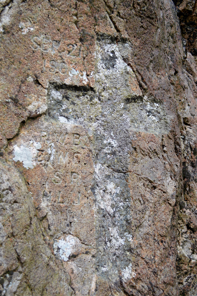 The 1903 Memorial Cross found at the foot of Scafell Pinnacle.